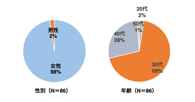 未就学児~小学生の子どもがいる30代~40代の女性が多く、アレルギーのレベルは「かなり重いと思う」「どちらかといえば重いと思う」と回答した人が約6割を占めました。アレルギーの種類は落花生、卵、乳を筆頭に特定原材料7品目を挙げる人が多く、その他ではくるみ、アーモンドなどのナッツ類やフルーツが目立ちました。