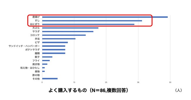 唐揚げ、すし、おにぎりなど原料が比較的わかりやすいものをよく購入する