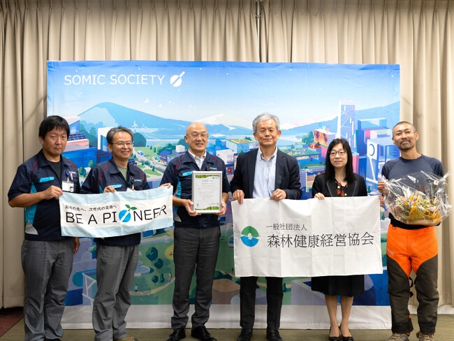 ソミックグループ内の事業統括を行うソミックマネージメントホールディングス(静岡県磐田市、代表取締役社長:石川雅洋)は、一般社団法人 森林健康経営協会(静岡県浜松市、代表理事 浅沼宏和 以下森林健康経営協会)と行ってきた「Kicoroの森 10年プロジェクト」の開始から3年目を迎えるにあたり、2024年7月、森林健康経営協会の森林健康経営認証の第1号として認証されました。