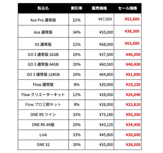 セール期間中は、大人気360度アクションカメラInsta360 X3、Insta360 Ace Proが最大22%割引になります。また、世界最小アクションカメラInsta360 GO 3も20%割引で販売し、大変お買い求めやすい価格となっています。海水浴、アウトドア、キャンプ等、夏の行楽にピッタリな防水、頑丈、小型アクションカメラをゲットして、夏の思い出を残しましょう。