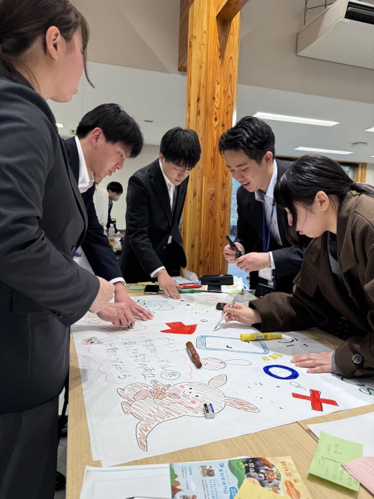 豊橋信用金庫(本店所在地:愛知県豊橋市、理事長:山口 進)は、豊橋総合動植物公園「のんほいパーク」(以下「のんほいパーク」という。)と協業し、動植物園でSDGsを学び、SDGsを切り口にビジネスアイデアを立案する社会人向け教育プログラム「地域共創フィールドワーク」を共同企画。新入職員研修のプログラムのひとつとして、令和8年4月10日(金)に実施し、令和8年度の新入職員34名が参加しました。