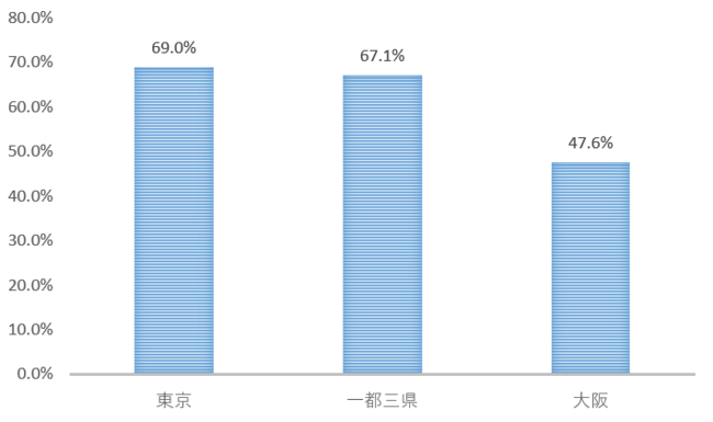 東京と東京・千葉・埼玉・神奈川の一都三県、そして大阪で「ある」と回答された人の割合を集計すると上記の通りとなりました。