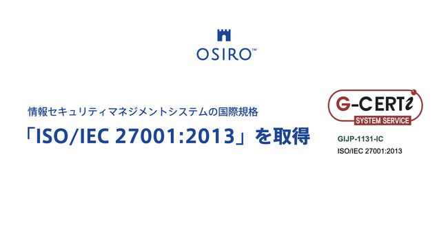 コミュニティ専用オウンドプラットフォーム「OSIRO」を提供するオシロ株式会社(本社:東京都渋谷区、代表取締役社長:杉山 博一、以下 当社)は、2023年10月、情報セキュリティマネジメントシステム(ISMS)の国際規格であるISO/IEC 27001:2013の認証を取得しました。