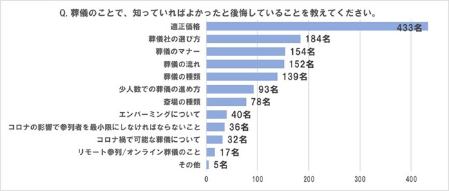 ■「葬儀」のことで知っていればよかったと後悔した内容は、「適正価格」が断トツのトップ、2位は「葬儀社の選び方」