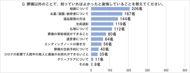 ■「葬儀以外」のことで知っていればよかったと後悔した内容は、1位「相続」、2位「お墓」、3位「遺品整理の方法」