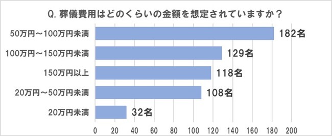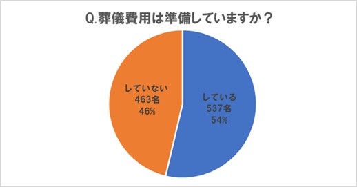■「葬儀費用の準備をしている」人は54%で過半数を占める、準備している金額は、1位「50~100万円未満」、2位「100~150万円未満」、3位「150万円以上」