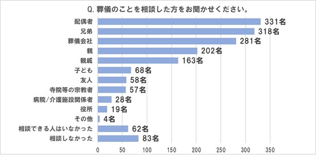 ■「葬儀」の相談相手は、1位「配偶者」、2位「兄弟」、3位「葬儀会社」
