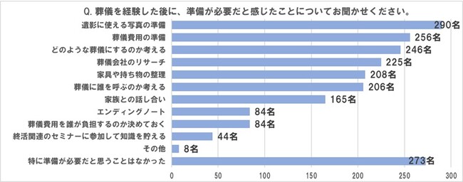 ■喪主の経験を経て「葬儀」の準備に必要と感じたことは、1位「遺影に使える写真」、2位「葬儀費用の準備」、3位「どのような葬儀にするか考える」