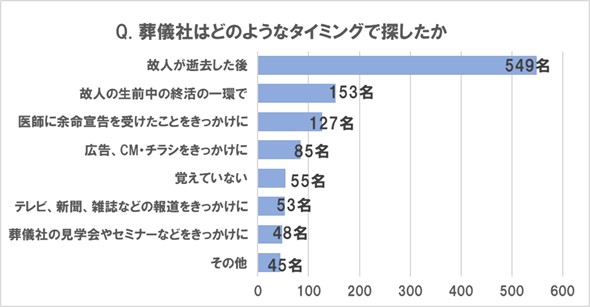 ■葬儀社を探すタイミングは、「故人が逝去した後」が55%で過半数を占める