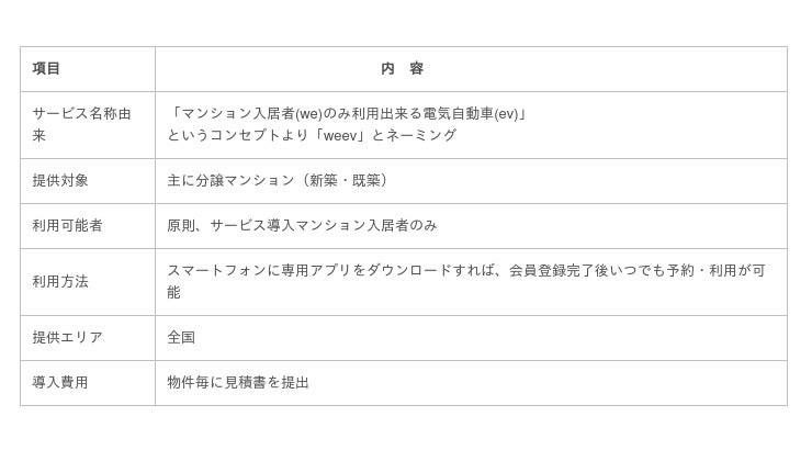電気自動車シェアリングのサービス「weev(ウィーブ)」を全国エリアに拡大 ~マンション入居者サービスでスマートなカーライフを提供~
