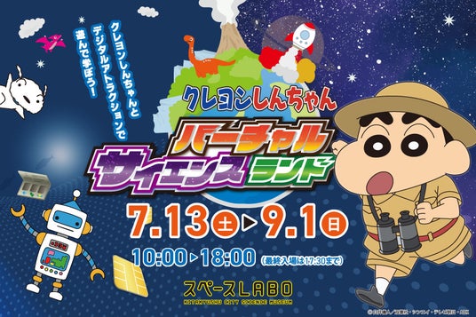 クレヨンしんちゃんと“迷子になったロボット”が海、恐竜、宇宙の3つのバーチャルエリアで繰り広げる大冒険!オリジナルムービーやバーチャルアトラクションという最新のデジタル技術を取り入れた展示エリアで、家族そろって安心・安全に楽しめる内容です。