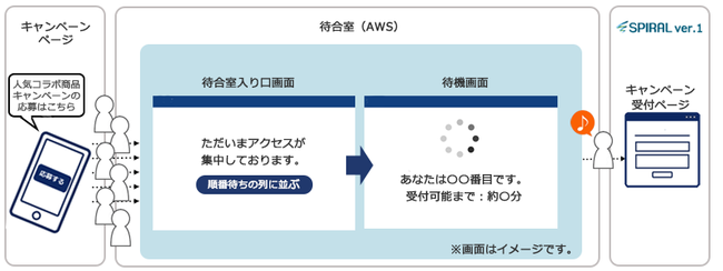 これにより、工場見学やイベント予約などの先着順の申込受付や数量限定のキャンペーン受付、SNS通知によるWeb申込受付、新型コロナワクチンの接種予約など、アクセス集中が予想される場面において、快適なウェイティング環境を提供します。