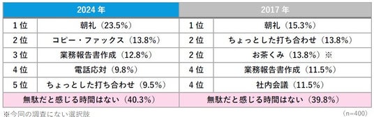 一方で、「無駄だと感じる時間はない」と回答した人は40.3%で、これは2017年の39.8%とほぼ同じ割合でした。
