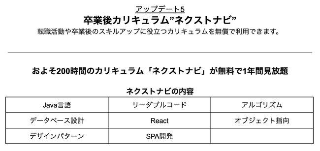 アップデート5:卒業後カリキュラム「ネクストナビ」を1年間無料提供