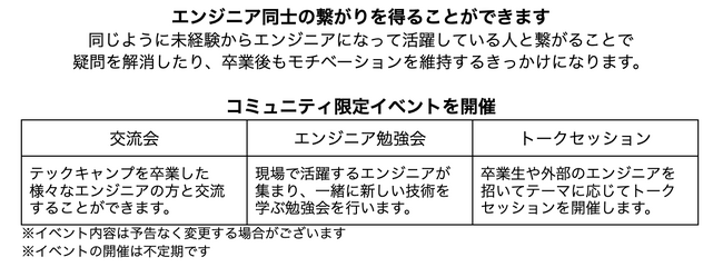 関連リリース:テックキャンプ、卒業生と受講生向け「テックキャンプ公式コミュニティ」を開設。ITエンジニアに必要なAIなどの技術トレンドの習得、就業後の不安解消と仲間づくり、学習継続の習慣化、キャリアアップを支援