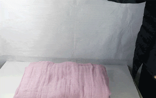 通常のガーゼケットで使用される糸の約半分の細さである高級極細綿糸を特殊加工し(エアーフィーリング(R)糸)タオル織機で織り上げることでふんわり軽くやわらかい肌触りの国産「6重織ガーゼケット」が誕生しました。
