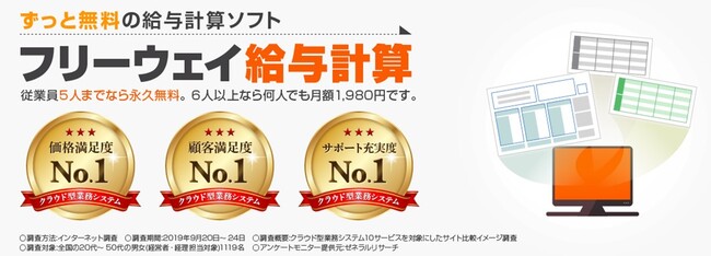 フリーウェイ給与計算は永久に無料でご利用いただける給与計算ソフトです。