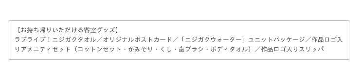 ※入浴プランのラブライブ!ニジガクタオルはホテルのコラボルーム特典と同じものです。