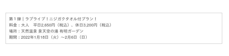 ラブライブ!ニジガクタオル付きのおトクなプランで天然温泉を楽しもう!