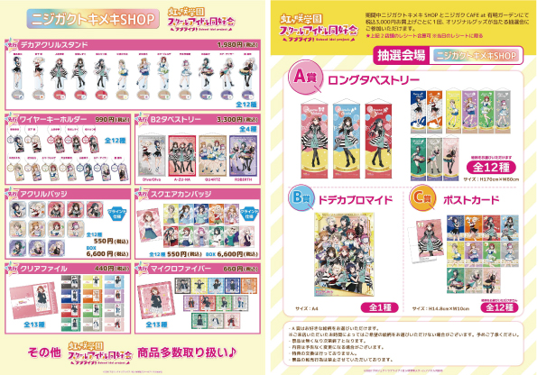 先行商品&関連グッズが盛りだくさんでテンションは最高潮!ニジガクトキメキSHOPとニジガクCAFEのお買上げレシートで参加できるガラポン抽選会のアイテムにも注目!
