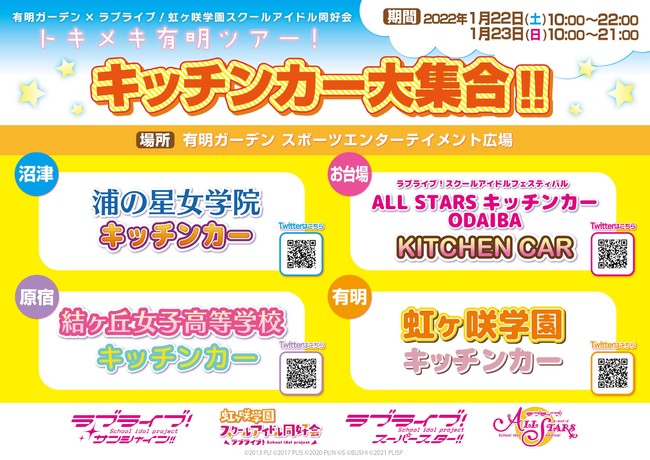 さらに!「東京ガーデンシアター」でのライブを記念して、期間限定でシリーズ各学校のコラボキッチンカーも大集合!
