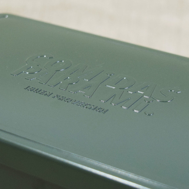 ふたのロゴは工具箱のような凹凸エンボスで表現。遊び心をくすぐります。