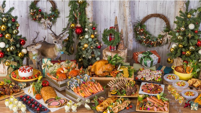 インターナショナルなシェフチームが腕をふるい、世界各国のクリスマス料理がお楽しみいただける「2022 クリスマス&ニューイヤースペシャルビュッフェ」。クリスマス料理の定番「ローストダックのオレンジソース」や、「チキンロールのオーブン焼き トリュフ風味のジュで」に加え、美味しいだけでなく、SDGsにも配慮したサステナブル・シーフードを使用した「シーフードバー」などもお楽しみいただけます。シアラの高さ40メートルの空間には、約28,000個の輝くイルミネーションがクリスマスシーンを演出します。