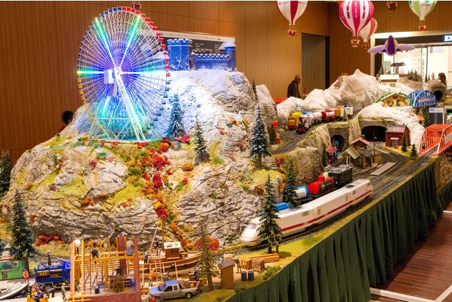 今年で11回目を迎える「ヒルトン・クリスマス・トレイン」は、ヒルトンの企業責任戦略『トラベル・ウィズ・パーパス(Travel with Purpose)』の一環でもある地域社会への貢献活動の一つです。カラフルな列車や色とりどりの気球、輝く観覧車などのアイテムで再現された冬のヨーロッパの景色を50.3平方メートル の巨大ジオラマとして展示しております。