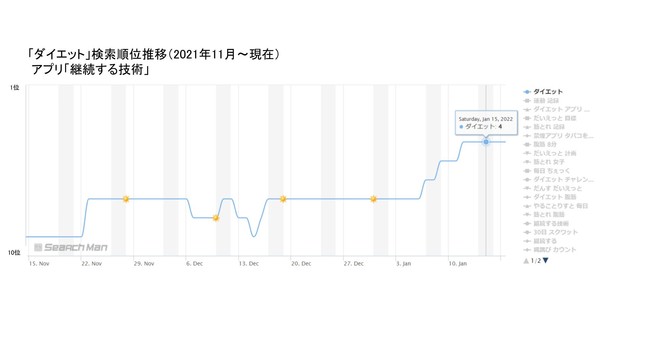 (本リリース執筆時点2022年2月6日。App Store「ダイエット」の検索順位)