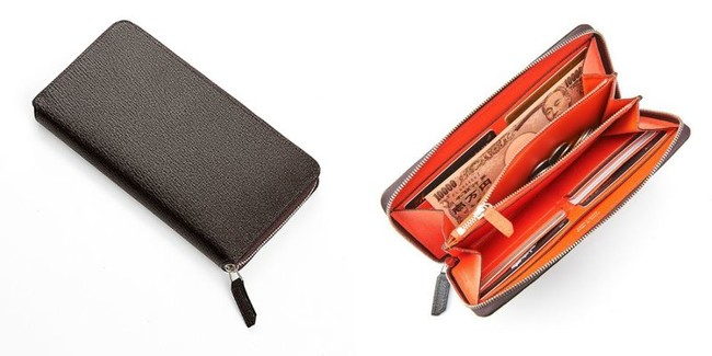 最後は、根強い人気の長財布〈ドレスラウンドジップウォレット〉をご紹介します。90度に大きく開くデザインは、中が見やすく取り出しもスムーズ。構造をシンプルにすることにより、厚みを薄く仕上げました。カードケース裏にはマルチポケットがあり、レシートや領収書なども整理して収納できる機能面も魅力です。