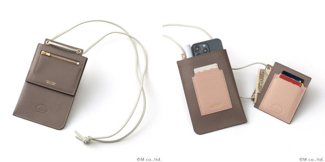 続いて、スマートフォンをスタイリッシュに肩掛けできることで人気の〈スマートWショルダーウォレット〉をご紹介します。手前側のミニウォレットは、紙幣やレシートを収納できるフリーポケットが2つ、背面側にカード室を2室装備。背面側のポーチはスマートフォンだけでなく、リップ等のコスメも併せて収納可能なデザインです。