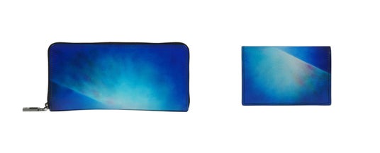写真左:まころんコラボアイテム『Azure Symphony』ラウンドファスナーウォレット 115,000円