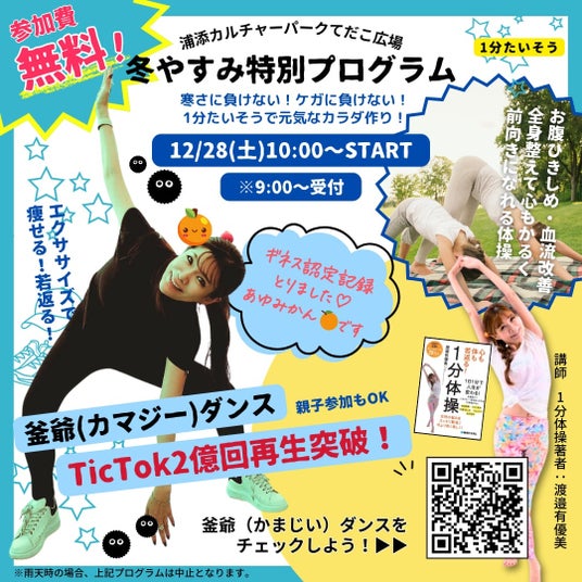 12月28日(土)に開催される「冬休み特別プログラム」では、渡邉有優美氏が考案した「1分間体操」を体験いただけます。