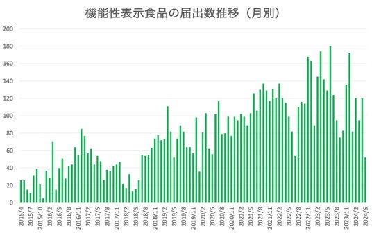 機能性表示食品の届出数推移、人気成分、効果などについて、集計結果をお伝えします。
