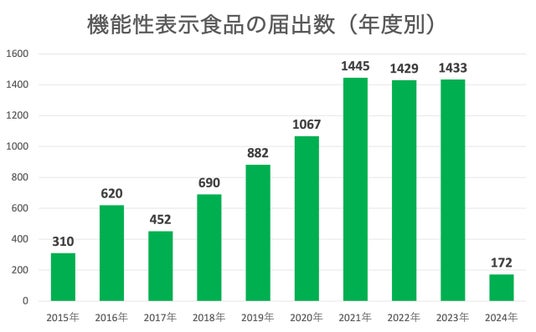 機能性表示食品制度が始まってしばらく経ち、届出件数や市場規模は大きく増えました。