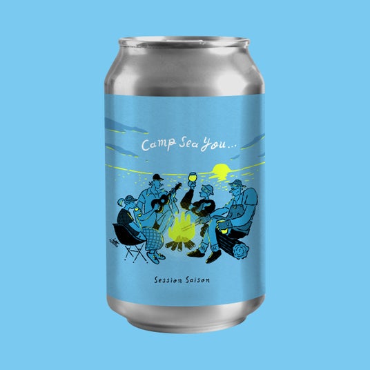 コラボビール「Camp Sea You-Session Saison-」は「横浜ビール」で最もキャンプを愛しているヘッドブルワー井田 章一と、ウクレレシンガー宮 武弘さんを中心に、アウトドア好きなメンバーでキャンプをしながら考えた、外に出掛けて皆で飲みたくなるビールです。缶ビールのラベルデザインはイラストレーターのイソガイヒトヒサさん。キャンプ中に焚き火を囲んでいる「横浜ビール」のブルワー3人と、ウクレレを奏でる宮 武弘さんが描かれています。
