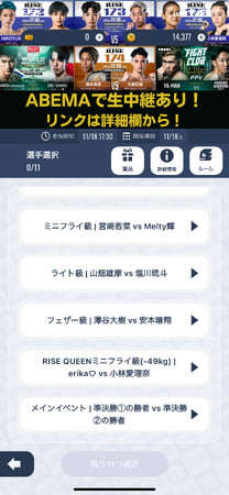 『RISE173』全11試合で勝敗予想を展開 上位入賞者には豪華ギフトも!