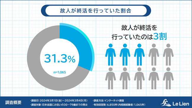 相続・終活手続きに関する「みんなの相続窓口」「みんなの終活窓口」を展開する株式会社ルリアン(本社:京都府京都市、代表取締役会長兼CEO・藤巻米隆)は、相続に関する全国調査2024を行い、6,850人(親の死による相続の経験者1,065人を含む)から回答を得ました。第1弾では遺言書、第2弾では家族間の関係性をお伝えしましたが、今回は認知症予防の日(6月14日)を前に「終活」をテーマとした調査結果をお伝えします。