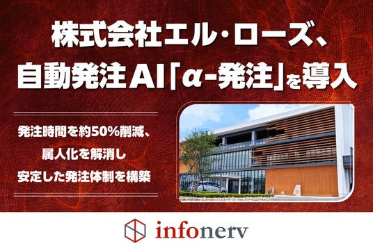 自動発注AI「α-発注」の開発・提供を行う株式会社infonerv(本社:東京都千代田区、代表取締役:江田 研人)は、衣料品・健康食品・美容品などの企画・製造・販売を手がける株式会社エル・ローズ(本社:福井県福井市)が発注業務の効率化を目的に「α-発注」を導入したことをお知らせします。