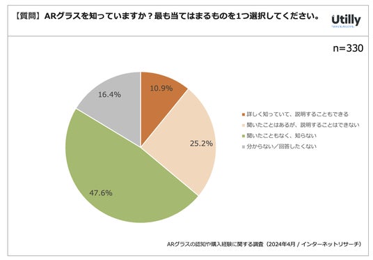 法人SaaSの比較メディアUtilly(運営会社:株式会社GO TO MARKET、所在地:東京都渋谷区)では、2024年4月にARグラスの認知や購入経験に関する調査を実施しました。