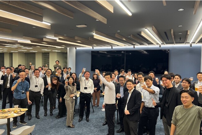 社員による提言プロジェクトでは、新規ビジネスからワークスタイル等まで幅広い提言がなされ、採択された企画は随時実施されています。今回実施された新オフィスでの交流会は、在宅勤務の導入による社員同士のコミュニケーションの減少や繋がりの希薄化を課題と感じた4名の社員からの提案でした。新オフィスのフリースペースにて初開催され、直近入社した社員も含め総勢70名ほどが参加し、交流を深める機会となりました。