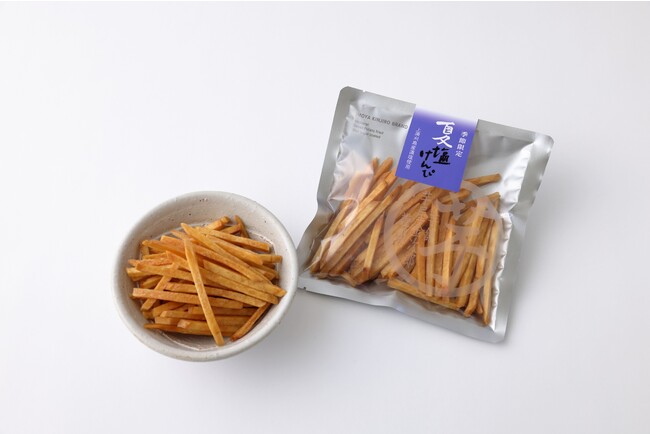 ほどよい塩気の感じる甘くない塩けんぴです。藻塩の旨みと芋の風味が引き立つ味わいに仕上げています。数量限定のため、通販のみでの販売です。
