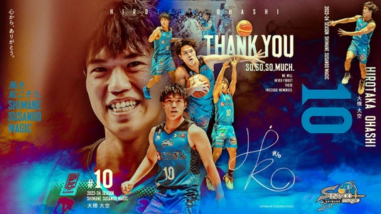 プロ一1年目を島根で過ごせた事、そして皆さんの前でプレー出来た事は僕のバスケット人生でもかけがえのないものになりました。 自分自身、決して良かったと言えたシーズンではなかったかもしれません。