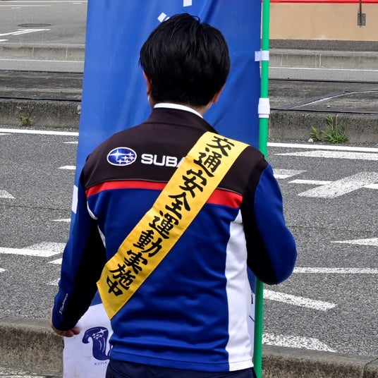 静岡スバルは春、夏、秋、年末の交通安全運動期間に全店舗前で社員が交通安全の旗持ち活動を行っています。