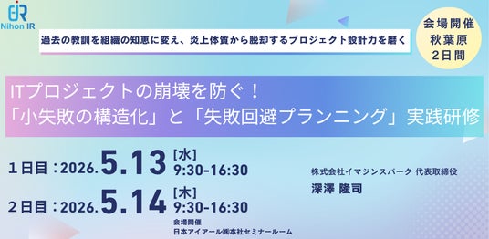 アイアール技術者教育研究所は、ITプロジェクトの崩壊メカニズムを体系化し、予兆検知からリスク評価、計画策定までを実践演習で身につける2日間研修セミナーを開催します。