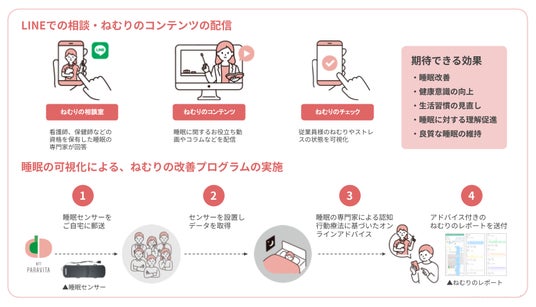 NTT PARAVITAは、2021年7月にNTT西日本とパラマウントベッドによる合弁会社として設立後、4,000人を超える数多くの方の睡眠を改善してまいりました。 ぐっすり眠り健やかな生活をおくるという当たり前のことが、医療・介護費の抑制や健康経営の推進など、地域社会の重要課題の解決につながります。東川町への「ねむりの応援団」の提供を通じ、地域の健康増進や未病状態の早期発見により、町民の健康寿命の延伸を支援します。