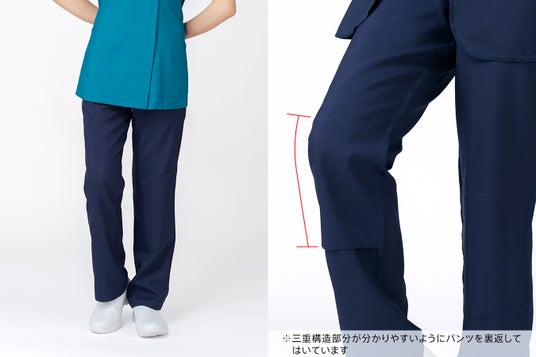 ユニフォームメーカーのフォーク株式会社(創業121年、本部:東京都千代田区、代表取締役:小谷野淳)は、2024年5月15日、医療現場の膝をつく動作に対応した「ひざ三重パンツ(6023SC)」をフォークプライベートブランドより発売しました。人気の定番カラー、ダークネイビーとバーガンディの2色を数量限定、フォークオンラインストア限定で販売します。本商品は膝をつくことが多い動物病院看護師の方の「膝に穴が開きやすい」という声をきっかけに、ヒアリングと着用テストに協力をいただきながら開発しました。