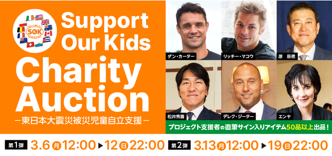 オークションの売り上げは、東日本大震災被災児童自立支援プロジェクト「Support Our Kids」の活動に活用されます。