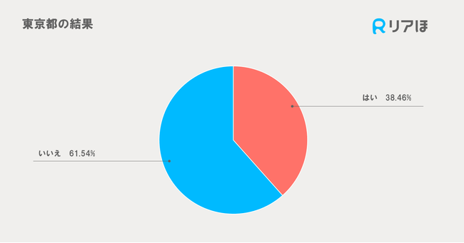Q1の回答結果を、東京都在住の方のみで集計したところ、「はい」が38.46%、「いいえ」が61.54%となり、計画を変更した方が全国平均と比較して10%以上も多いことがわかりました。