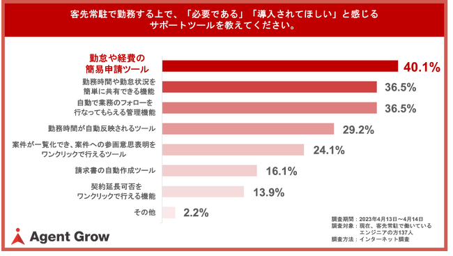 ~エージェントグロー、客先常駐で働くエンジニアが求めるサポートツールに関する調査を実施~